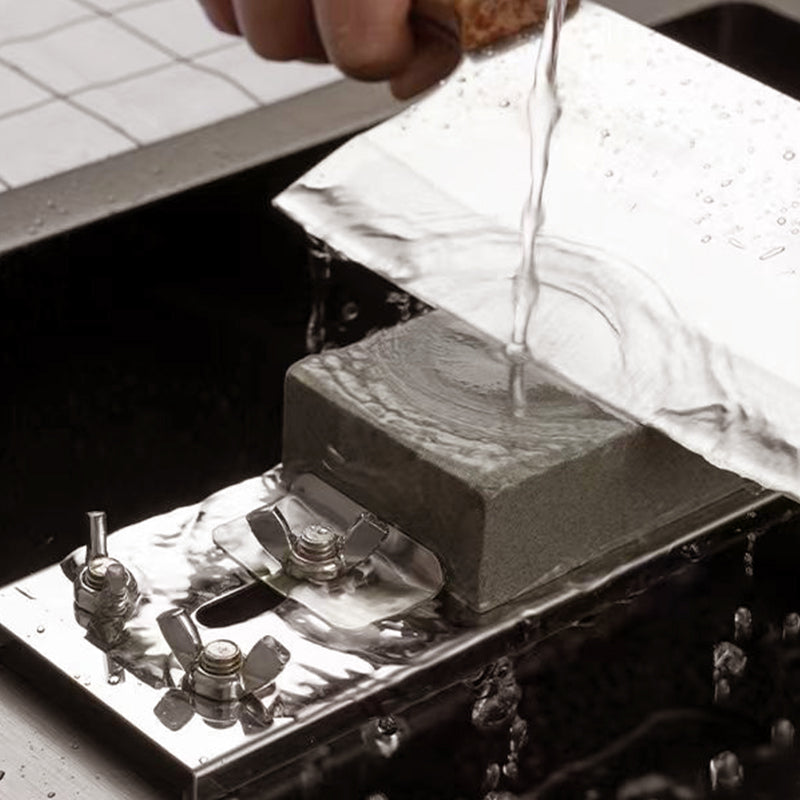 Spoel de wetsteen na gebruik af om verstopping te voorkomen.
