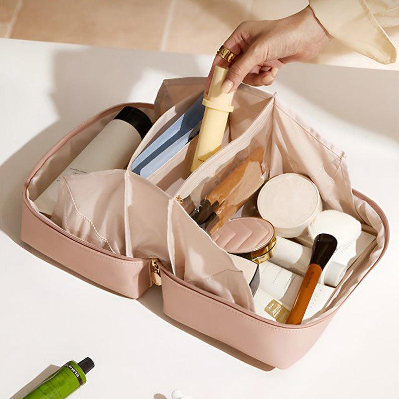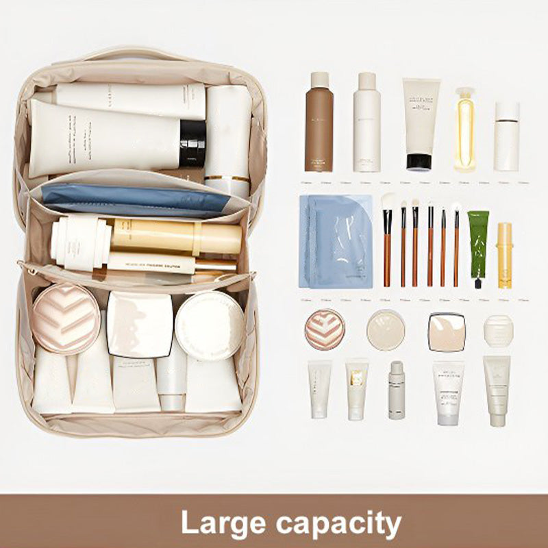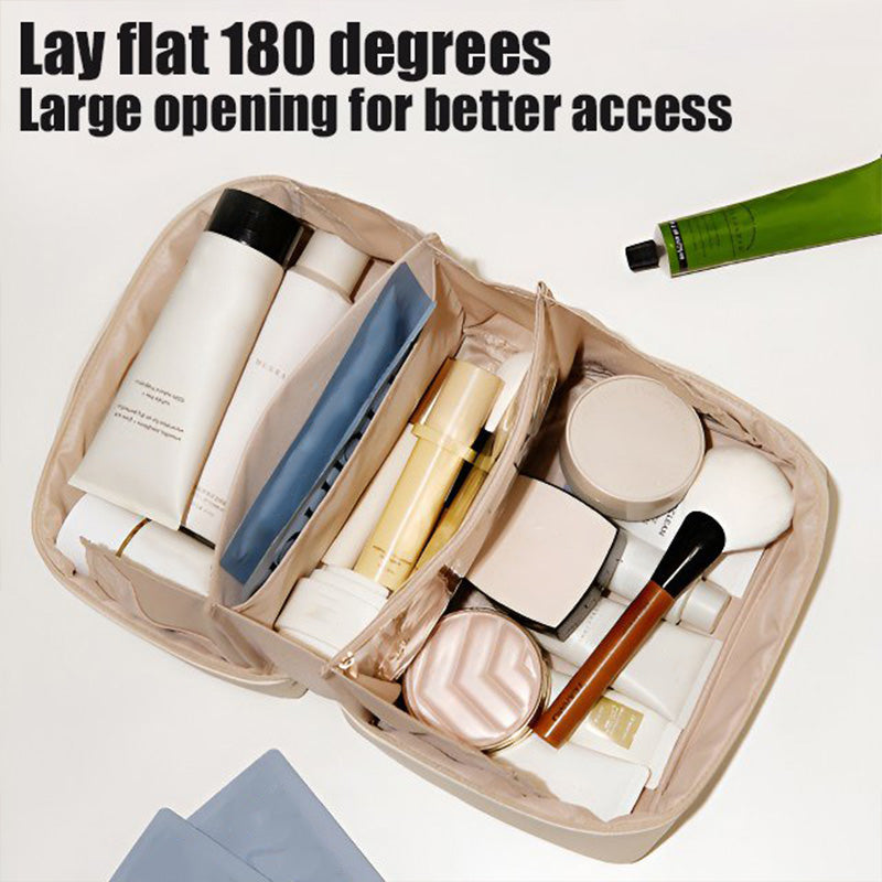 360° DRAAIBAAR ONTWERP - Het unieke 180° draaibare ontwerp van de opbergzak is een opvallend kenmerk. Hiermee kan ze moeiteloos toegang krijgen tot alle lagen door eenvoudig de bovenkant van de tas te draaien. Dit innovatieve ontwerp zorgt ervoor dat ze snel haar gewenste beautyproducten kan vinden en pakken zonder door rommelige make-uptassen te hoeven graven.
