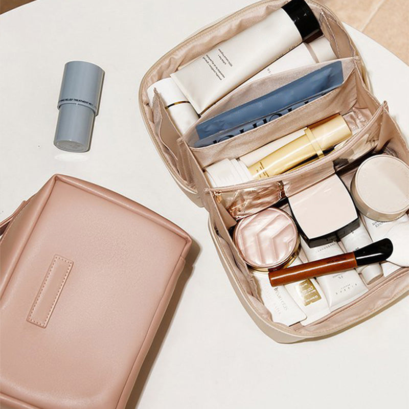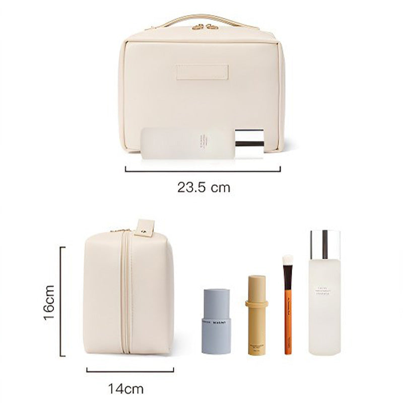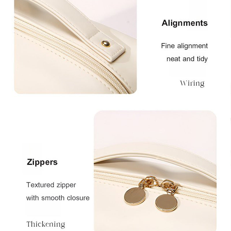 DUURZAAM EN WATERDICHT MATERIAAL - Gemaakt van hoogwaardig PU-materiaal is deze cosmetische opbergzak zowel duurzaam als waterdicht. Het biedt bescherming tegen morsen en vocht, waardoor haar waardevolle beautyproducten veilig blijven. De stevige constructie zorgt ervoor dat de tas dagelijks gebruik en reizen kan weerstaan, met langdurige functionaliteit.