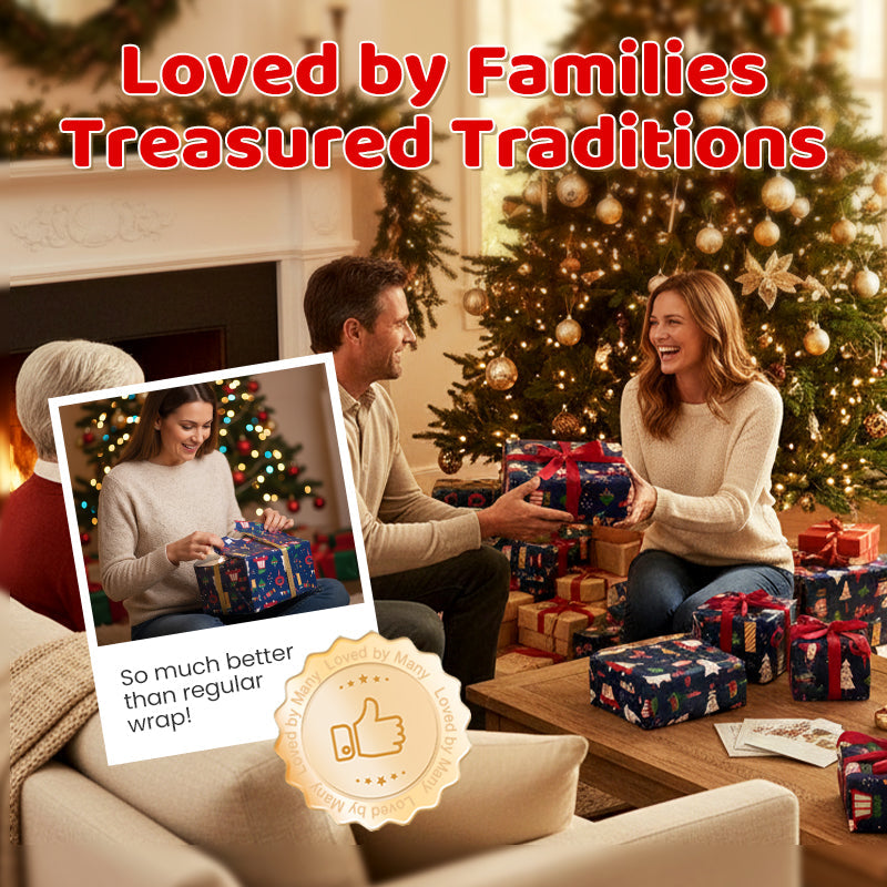LEVENDIGE & KLEURVASTE DRUK - De rijke, diepblauwe achtergrond en kleurrijke graphics zijn gedrukt met hoogwaardige inkt, waardoor het patroon helder blijft en niet vervaagt, zodat je cadeaus er prachtig uitzien onder de kerstboom.