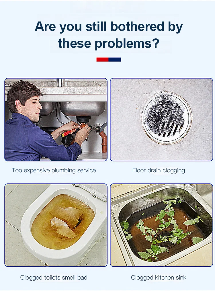 Krachtige Functie: Het kan pijpverstoppingen zoals haar, papier, zeepresten, groenten, fruit, voedselresten, vet, vlees en organisch materiaal snel oplossen.