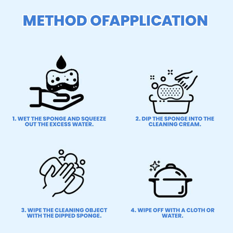 EENVOUD IG SCHOONMAAKKEN - Deze reinigingscreme maakt huishouden eenvoudig en efficient. Pas gewoon toe en wreef met de bijgeleverde spons in de reinigingscreme pot om modder, vette en smeren gemakkelijk te verwijderen.