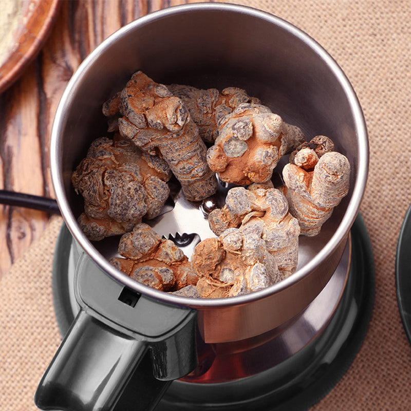 KRACHTIGE KOPEREN MOTOR - De Kleine Elektrische Slijpmachine Voor Thuisgebruik is uitgerust met een koperen motor die efficiënte en betrouwbare prestaties levert. Of je nu kruiden, koffiebonen, noten of andere materialen moet malen, de krachtige motor zorgt voor consistente resultaten en bespaart je tijd en moeite in het proces.