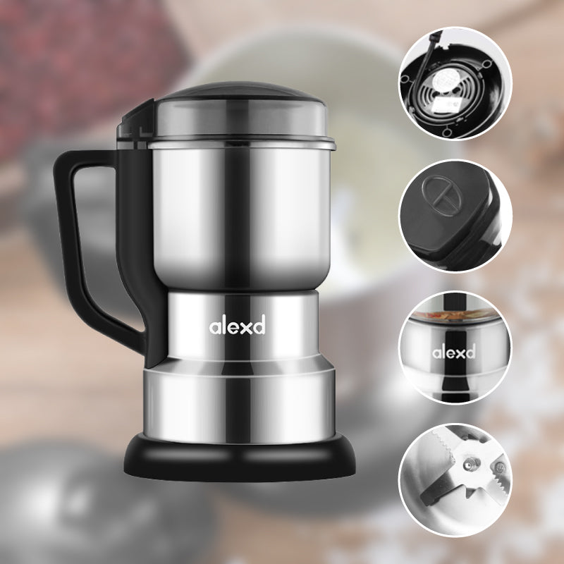 ROESTVRIJSTALEN CONSTRUCTIE VAN HOGE KWALITEIT - Deze Kleine Elektrische Slijpmachine Voor Thuisgebruik is gebouwd om lang mee te gaan, dankzij de hoogwaardige constructie met 316 roestvrijstalen materialen. De roestvrijstalen constructie garandeert ook voedselveiligheid, waardoor hij geschikt is voor het malen van ingrediënten voor koken of bakken.