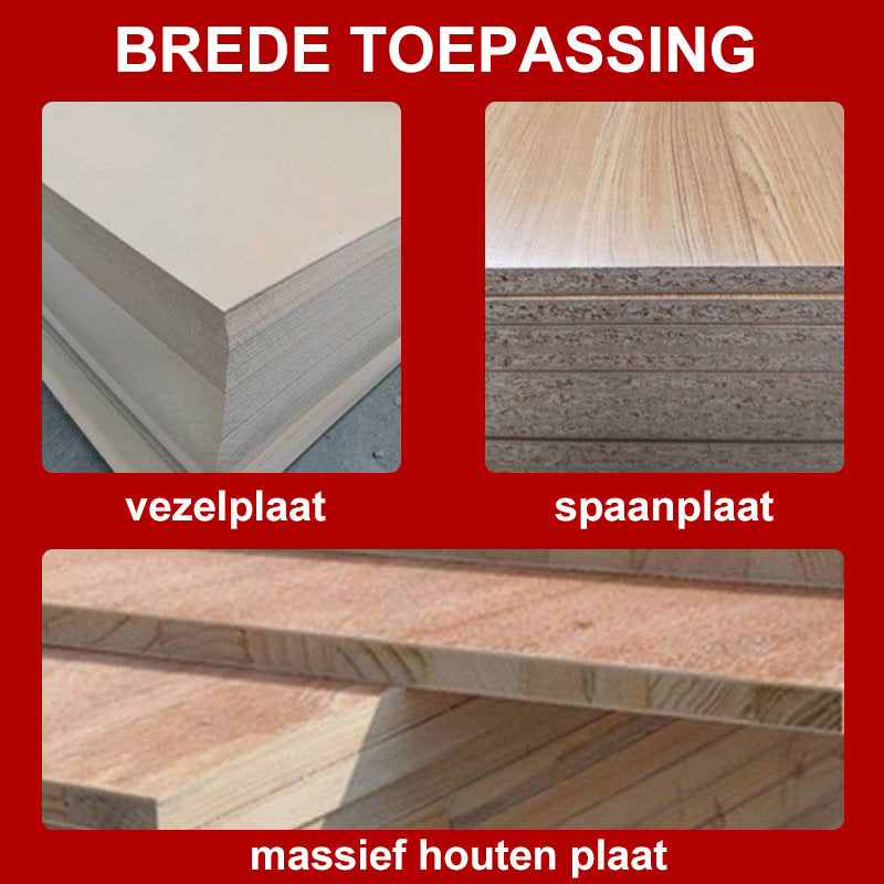 - Geschikt voor verschillende plaatmaterialen: Deze houtbewerkingsgadget is geschikt voor verschillende plaatmaterialen, waaronder MDF (vezelplaat met gemiddelde dichtheid), decoratieve bloemplanken en fijne houtbewerkingsplanken. De compatibiliteit met verschillende materialen maakt het een veelzijdig en essentieel gereedschap voor houtbewerkingsprojecten.