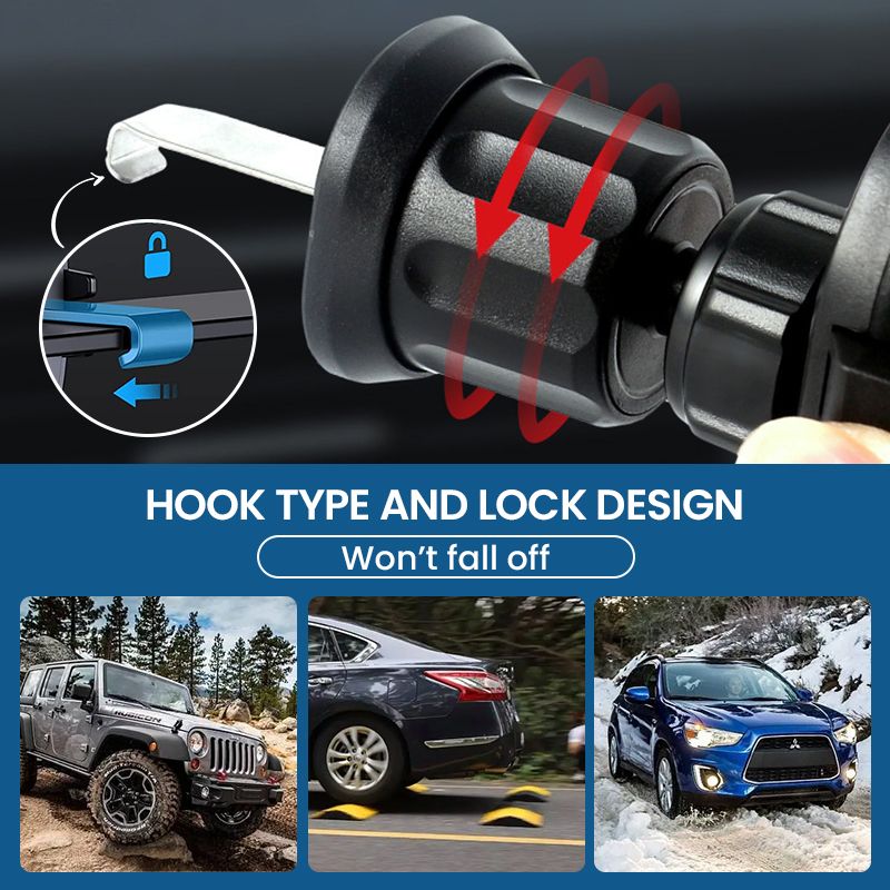 Geschikt voor horizontale en verticale ventilatieopeningen. Het haakontwerp is eenvoudig op te hangen en te vergrendelen, glijdt niet weg en kan zelfs op een hobbelige weg stevig worden bevestigd.