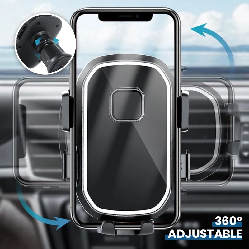 Deze Haak Type 360° Draaibare Telefoonhouder is perfect geschikt voor horizontale en verticale autoluchtroosters. Om het ventilatierooster te beschermen moet je, zodra de klem stabiel genoeg is aangedraaid, stoppen met het draaien aan de aandraaiknop.