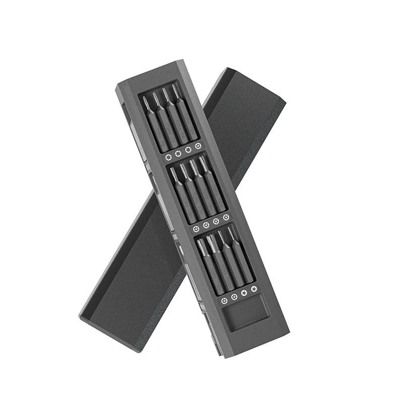 Bovend houdt een ingebouwde bitopslag uw schroeven veilig en georganiseerd vasthoudt, zodat u geen moeite hebt om ze te zoeken en de maten te vinden die het beste bij de schroeven passen. Ook vindt u snel het gereedschap dat u nodig hebt zonder te hoeven graven in een zak met ander gereedschap. Ondertussen zorgt het ingebouwde pop-out ontwerp ervoor dat u uw gereedschapset gemakkelijk kunt openen.