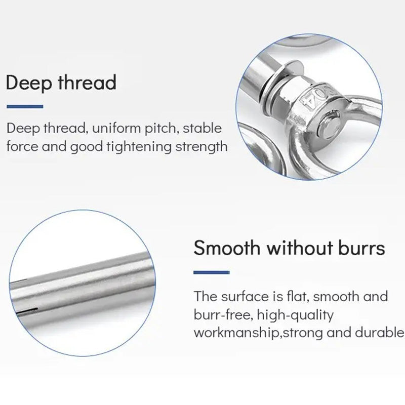 STAINLESS STAAL VAN HOGE KWALITEIT: Gemaakt van duurzaam 304 roestvrij staal, zijn deze hefringuitzettingsschroeven bestand tegen roest, corrosie en slijtage, waardoor ze zelfs in ruwe omgevingen lang blijven presteren.