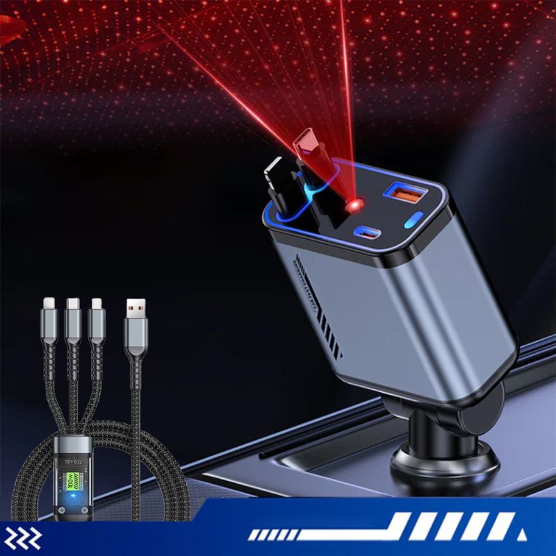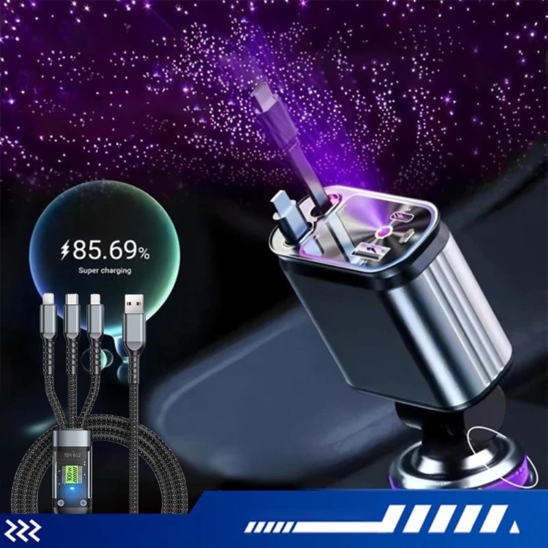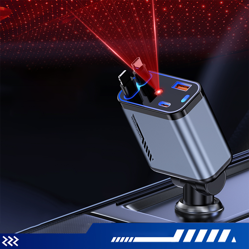 Multifunctionele Snelladen Autolader met Intrekbare Kabel