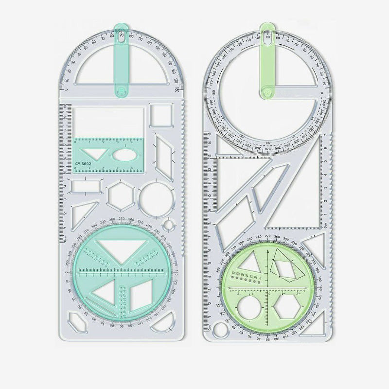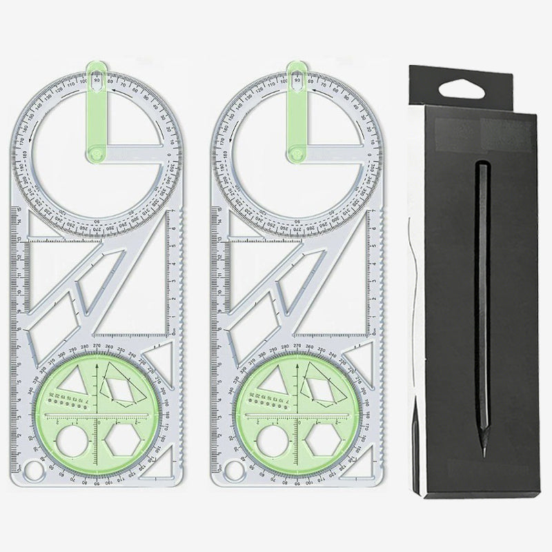 ALL-IN-ÉÉN GEOMETRIE-GEREEDSCHAP - Combineert liniaal, gradenboog, passer en diverse sjablonen in één compact apparaat. Vereenvoudigt de pennenetui en zorgt ervoor dat er het juiste gereedschap is voor elke wiskunde- of geometrie-opgave.
