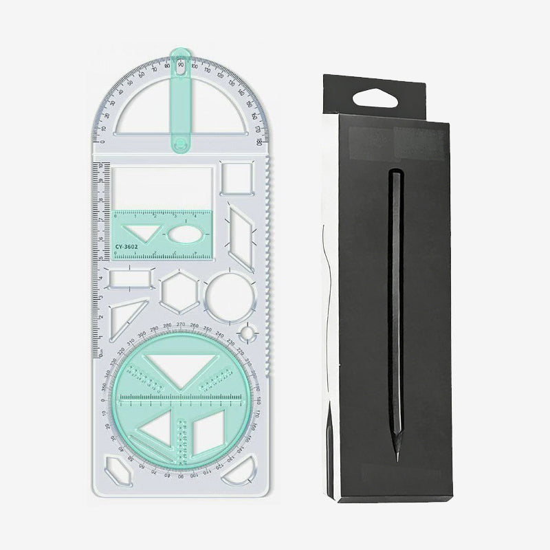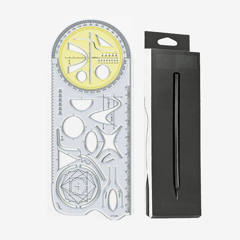 VEELZIJDIGE VORM SJABLONEN - Tekent moeiteloos een breed scala aan geometrische vormen, van eenvoudige cirkels en polygonen tot complexe 3D-vormen. Maakt huiswerk, diagrammen en creatieve projecten sneller, schoner en preciezer.