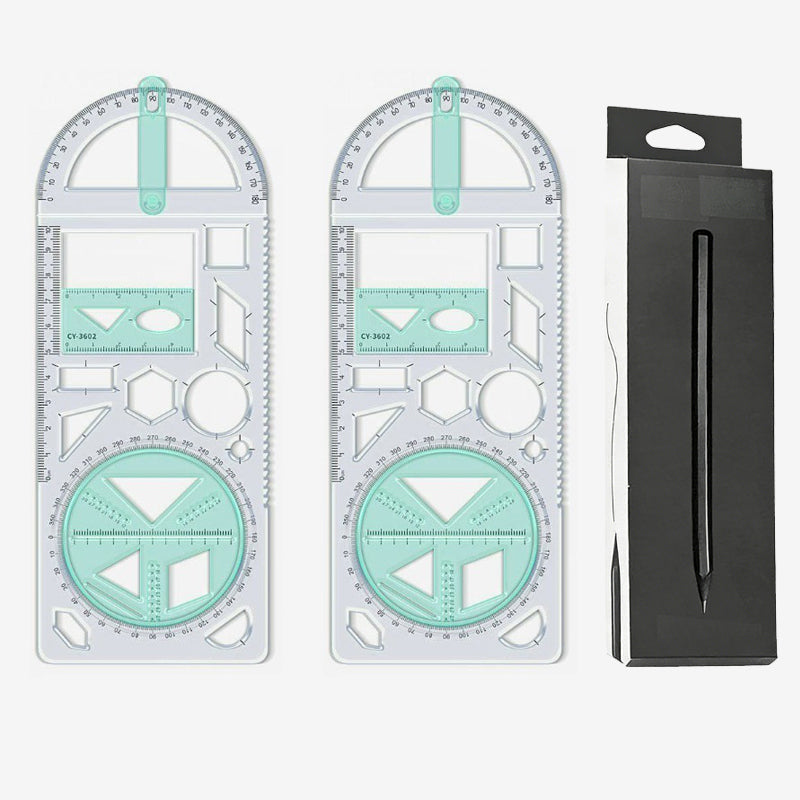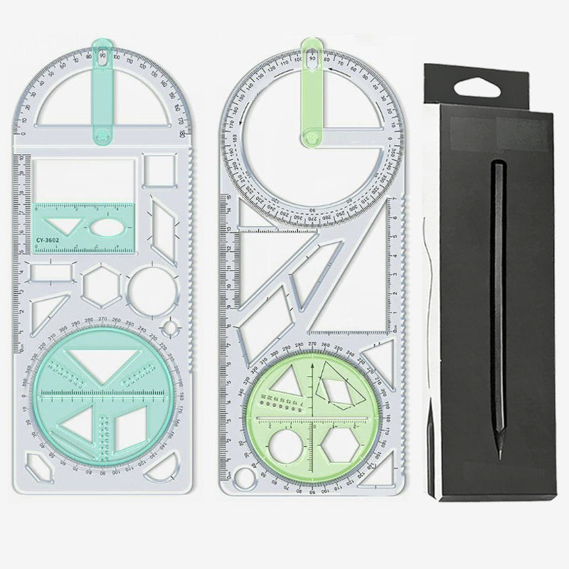 1 / 2 / 3 × Multifunctionele Geometrie Tekenliniaal + Potloden