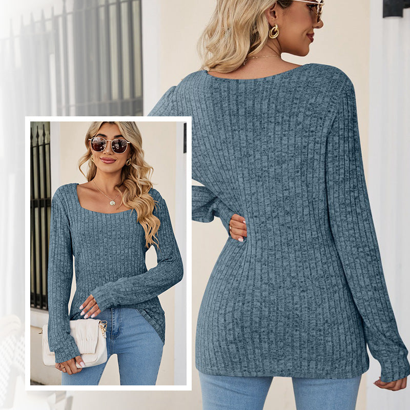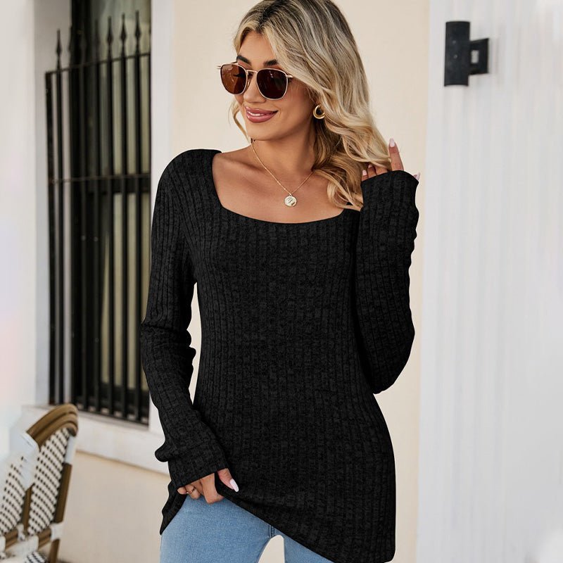 [Cadeau voor vrouwen] Vrouwen Vierkante Hals Lange Mouw Casual Gebreide Trui