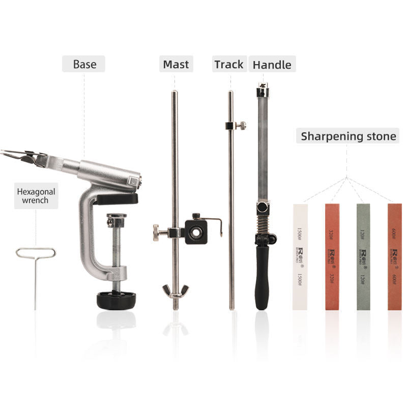 8. Gratis configuratie van 4 verschillende grove en fijne slijpstenen: 120 korrel, 320 korrel, 600 korrel, 1500 korrel. Deze vaste hoek slijper is geschikt voor messenliefhebbers die graag zelf hun messen slijpen.