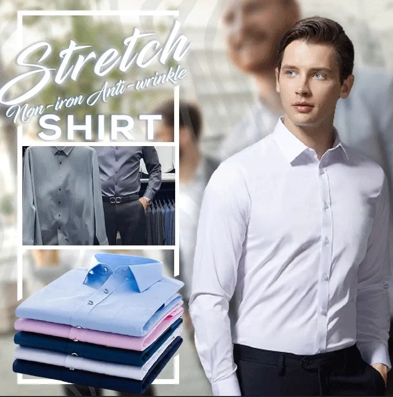 Strijkvrij, kreukvrij stretch overhemd-Gratis levering voor 2 stuks